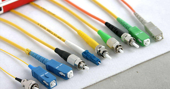 跳線在數據傳輸設備中一般用單模和多模來區分,單模跳線顏色通常為黃色,波長有兩種,分別為1310nm和1550nm,傳輸距離分別為10km和40km;多模跳線顏色通常為橙色,波長為850nm,傳輸距離為500m。根據接頭類型還可分為以下幾種: