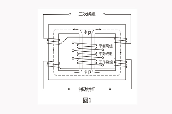 變流器的導磁體是一個三柱形鐵芯,用幾組“山”形導磁片疊裝而成,在導磁體的中柱上放置工作繞組和平衡繞組制動繞組和次級繞組則均分成兩部分,分別放在導磁體的兩個邊柱上,其連接方法應使得制動繞組與二次繞組及平衡繞組I、Ⅱ之間亦無相互感應,二次繞組里的感應電勢是由工作繞組的磁化產生的,為了能改變變流器導磁體被飽和的程度,制動繞組的匝數做成是可以改變的。