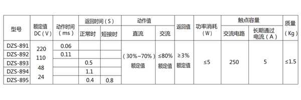 DZS-891/202延時(shí)中間繼電器主要技術(shù)數(shù)據(jù)見表